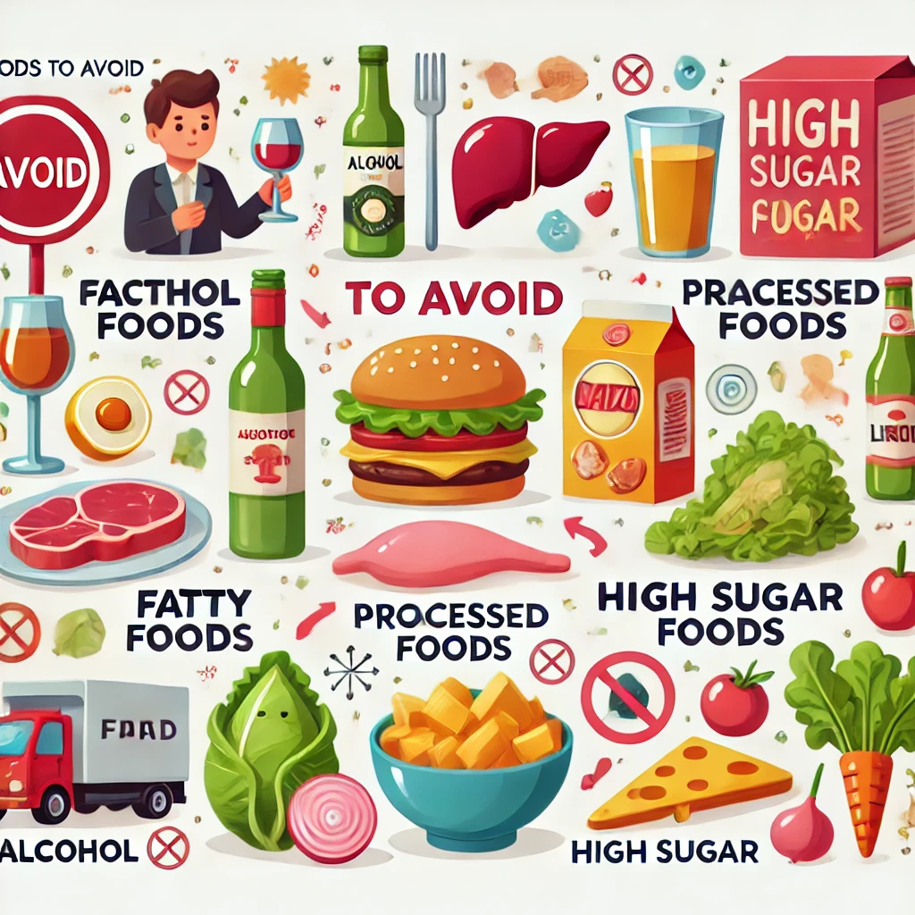• 설탕이 많이 들어간 음식: 간에 지방 축적을 유발할 수 있어 피해야 합니다.
