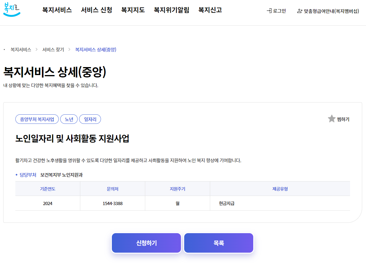 두번째 방법은 복지로 사이트에서 신청하는 방법으로 로그인후에 검색후 들어가시면 가능합니다