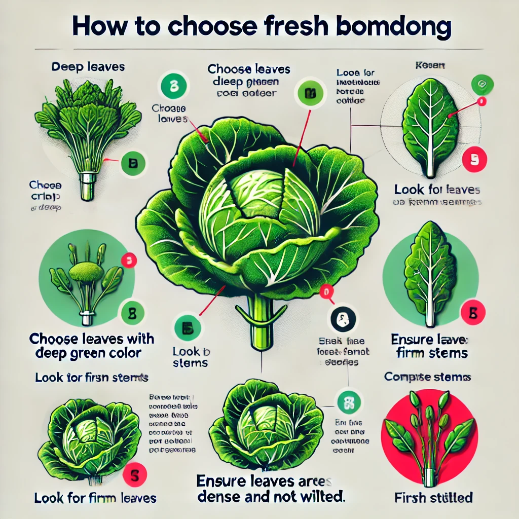 신선한 봄동을 고르기 위해서는 잎이 짙은 녹색을 띠고 잎 끝이 싱싱한 것을 선택하는 것이 좋습니다.